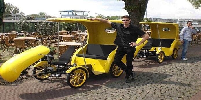 Peerke's IJscokar is super mobiel, zo achter de auto zonder aanhangerrijbewijs en op pad.